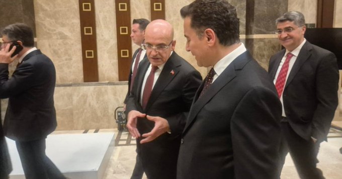 “Ali Babacan ve Mehmet Şimşek resepsiyon çıkışı uzun süre ekonomi üzerine konuştu. İkilinin ana gündemi enflasyon hedefleri ve işçi maliyeti oldu. Babacan genel olarak dinleyen taraftı, Şimşek uzun uzun anlattı.”