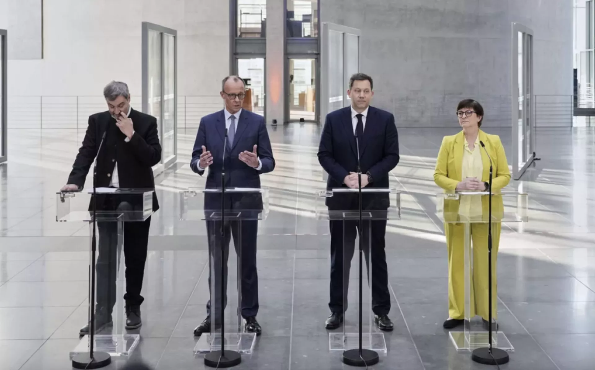 Merz’e göre, muhafazakar CDU/CSU bloğu ve Sosyal Demokrat Parti liderleri göç, ekonomi ve endüstri konusunda ortak ilkeler konusunda anlaştı.