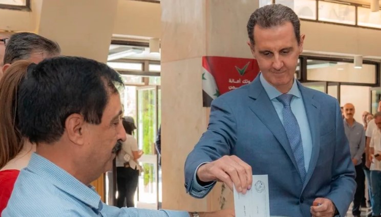 ونشرت “سانا” صورا لرئيس النظام، بشار الأسد وهو يدلي بصوته في أحد المراكز الانتخابية في دمشق.