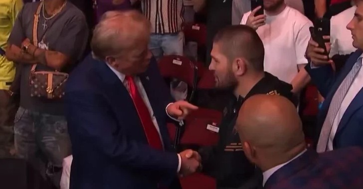 وشوهد الرئيس السابق وهو يتحدث مع حبيب بعد نهاية نزال صديقه إسلام ماخاشيف، حيث قال البطل الروسي السابق لترامب: “أعلم أنك ستوقف الحرب في فلسطين”، ليرد المرشح الرئاسي الأميركي: “سوف نوقف ذلك.. سأوقف الحرب”.