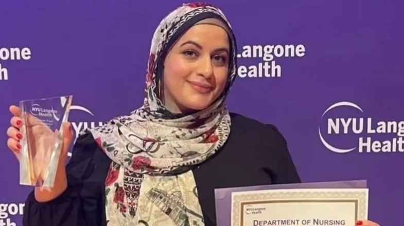 وذكرت وكالة “أسوشيتدبرس” أن الممرضة وتدعى حِسن جبر، تم تكريمها قبل أسابيع في مستشفى لانجون التابع لجامعة نيويورك لتعاطفها في رعاية الأمهات اللاتي فقدن أطفالهن، وخلال تكريمها قالت إنه يؤلمها أن ترى نساء بلادها فلسطين يعانين من خسائر لا يمكن تصورها خلال الإبادة الجماعية الحالية في غزة.