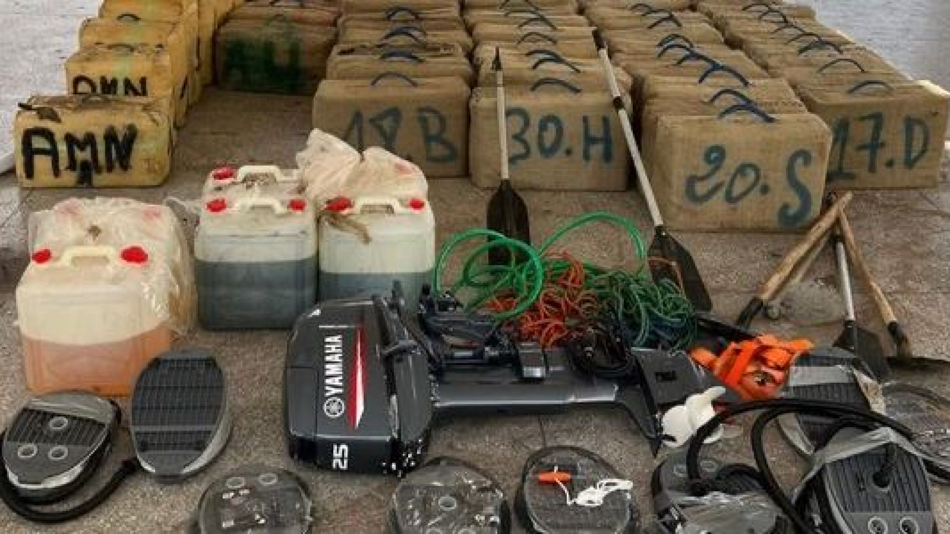 وقد ألقت السلطات القبض على خمسة أشخاص وهم متلبسون بنقل المادة المحظورة على شاحنة ويحاولون تحميلها على زوارق مطاطية سريعة بحسب بيان للشرطة المغربية.