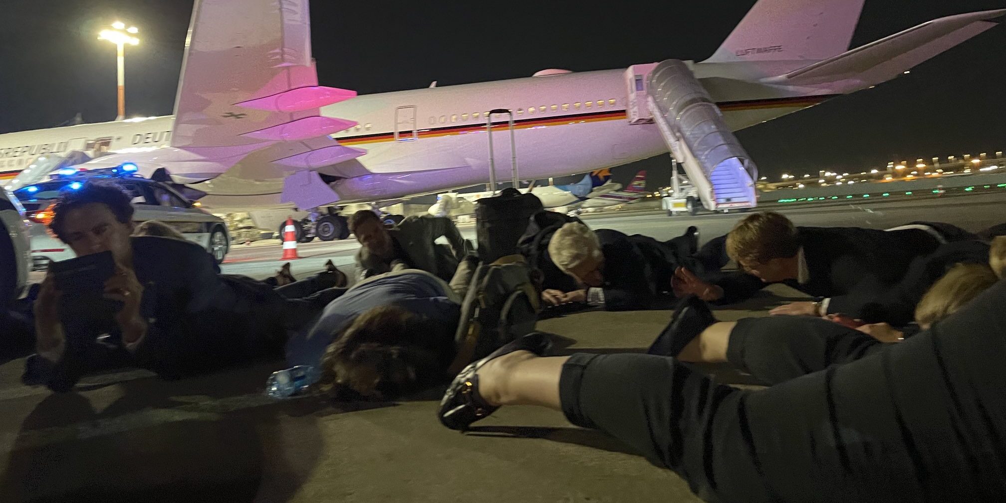 Uçağı boşaltan Almanya heyeti, sirenler susana kadar yere yatarak bekledi.