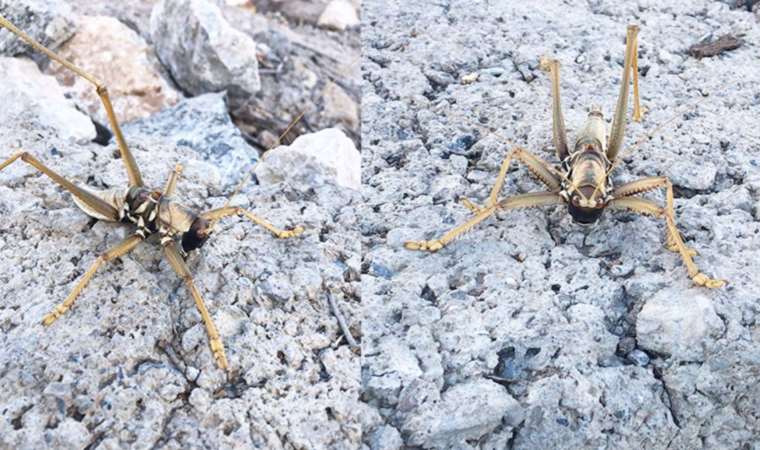 Batman’ın Kozluk ilçesine bağlı Geyikli köyünde yolda giden Ömer Budak, dev yaklaşık 20 santimlik etçil çekirge ile karşılaştı.