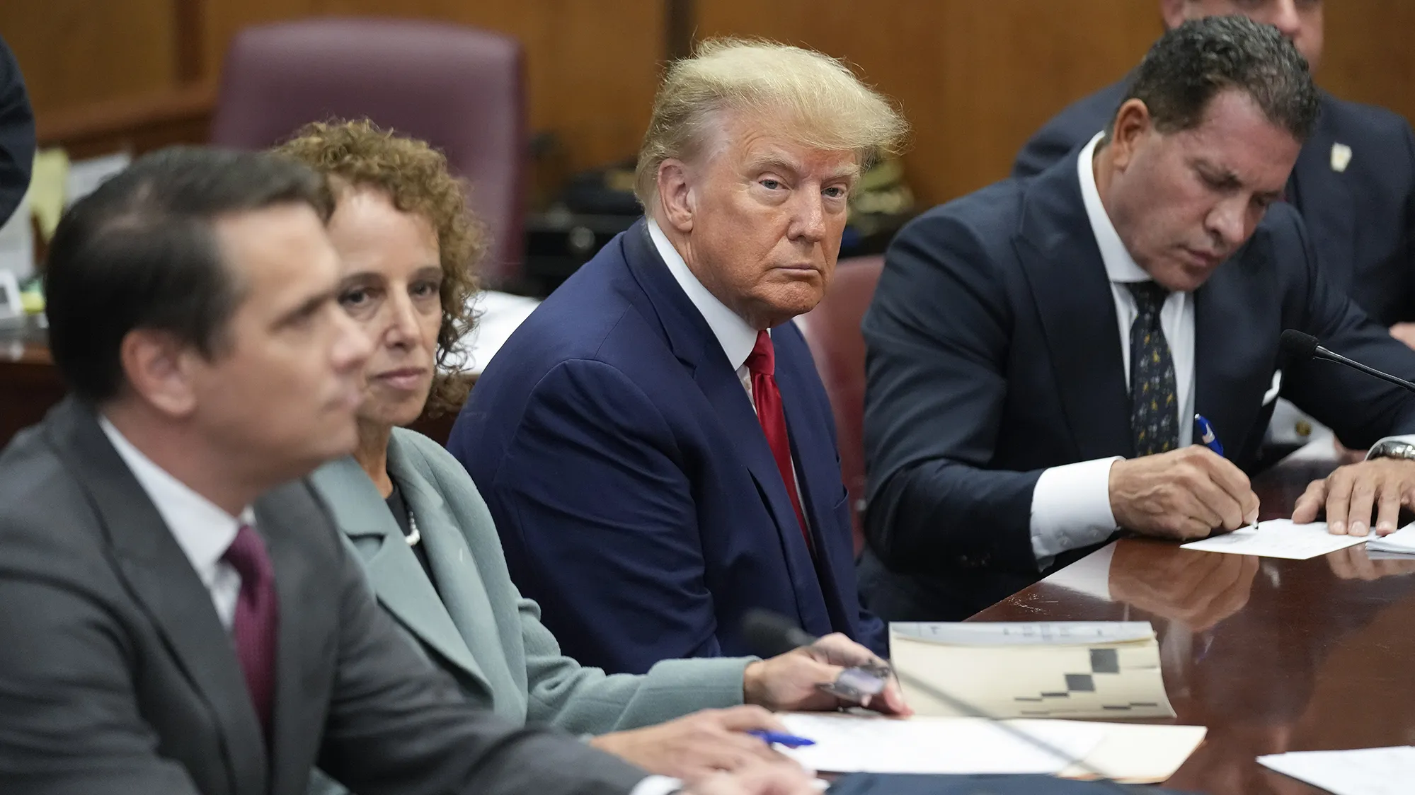 Binaya girdikten sonra polisin yanından herhangi bir şey söylemeden geçen eski ABD Başkanı, savunma ekibiyle birlikte mahkeme salonuna girerek hakim karşısına çıktı. Trump ve konvoyu, Manhattan’daki mahkeme binasına ulaşana kadar havadan ve karadan yoğun güvenlik tedbirleri uygulandı.