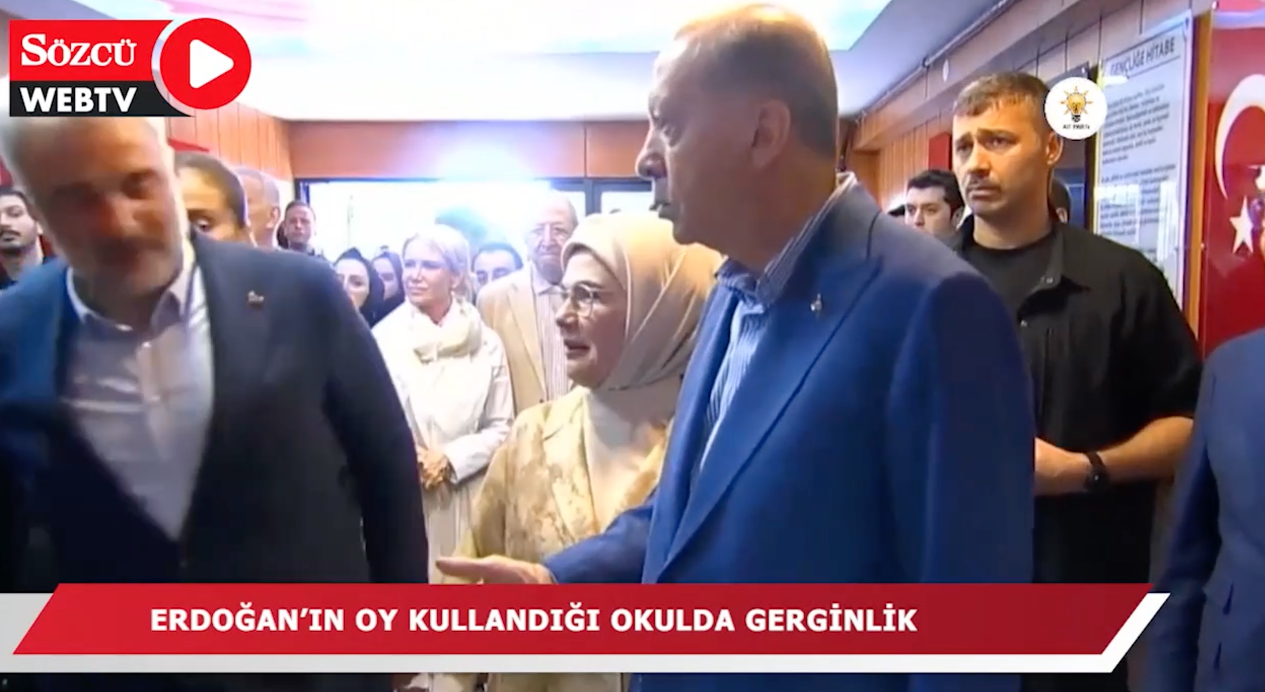Erdoğan’ın oy kullanmak için sıra beklediği anlarda sandık başında yaşanan gerginlik nedeniyle okulda bir anda sesler yükseldi.