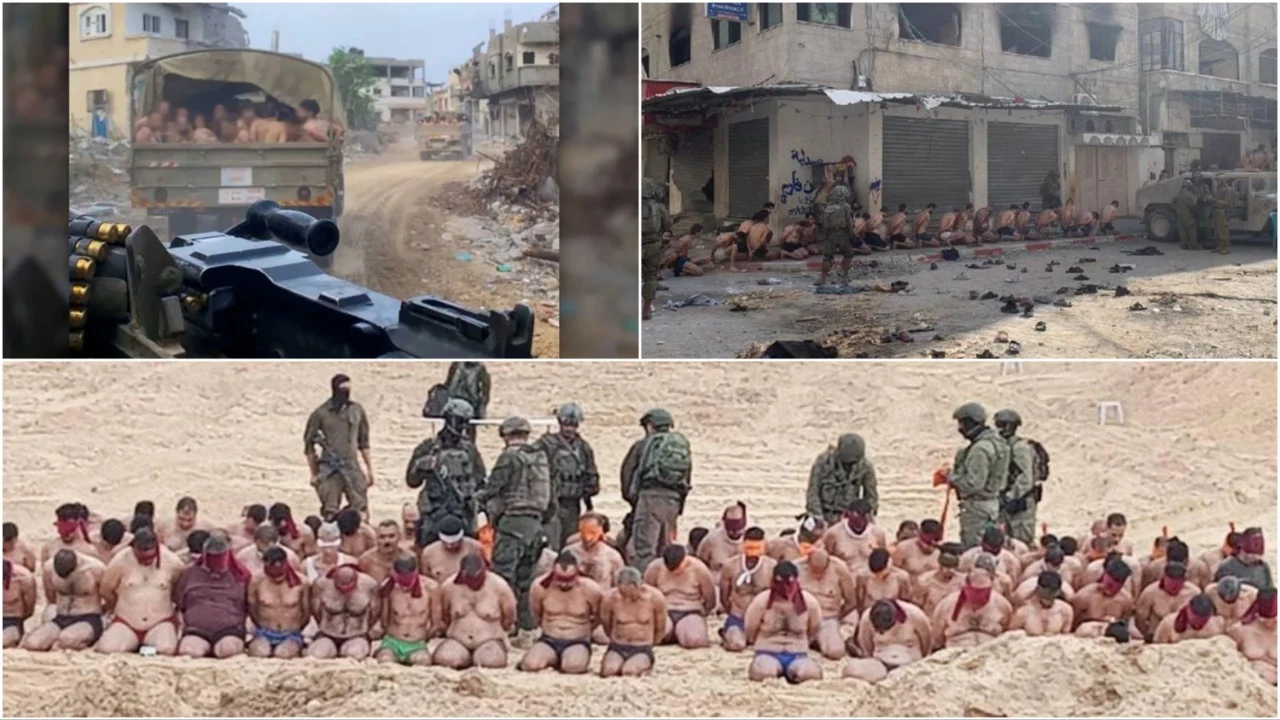 (The Turkish Post) – Gazze’de 7 Ekim’deki Hamas saldırılarının ardından çoğu kadın ve çocuk 16 bini aşkın Filistinliyi öldüren İsrail’in insanlık dışı uygulamalarına bir yenisi eklendi. Gazze’nin kuzeyindeki Beyt Lahya’da onlarca erkek, iç çamaşırlarına kadar soyulmuş, gözleri ve elleri bağlanmış halde görüntülendi. Aralarında çok sayıda sivillerin bulunduğu bu kişiler, bir diğer karede de çıplak şekilde bir askeri bir kargo aracına bindiriliyor.
