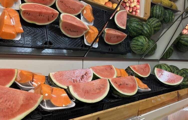 Karpuzun bütün fiyatı ise 300 lirayı buluyor. Bundan dolayı manavlar karpuzu bütün olarak satmak yerine dilimle satmayı tercih ediyor. Bir dilimi ise 60 lira.