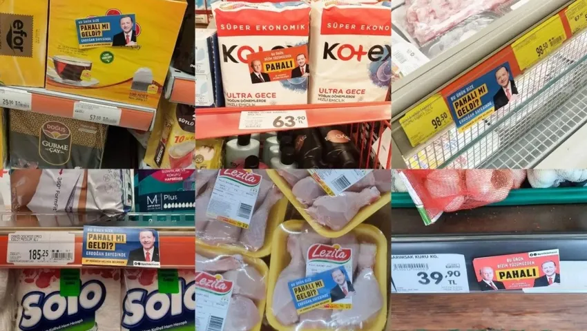 ‘Gençlik Devirecek’ isimli bir sosyal medya hesabı açılarak market etiketlerine bazı çıkartmalar yapıştırıldığını gösteren paylaşımlar yapıldı. Çıkartmalarda, “Bu ürün size pahalı mı geldi? Erdoğan sayesinde”, “Bu ürün bizim yüzümüzden pahalı. Oy verirken aklınızda bulunsun” ifadeleri yer aldı.