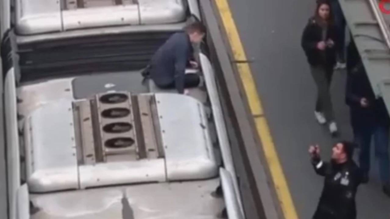 Kameralar yardımıyla metrobüsün üstünde bir kişinin olduğu tespit edenler durumu ekiplere bildirdi. Güvenlik tarafından durdurulan metrobüsün üstü kontrol edildi.