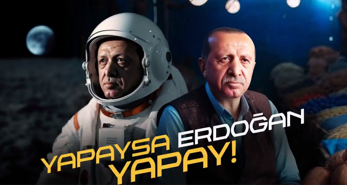 “Türkiye bir tırmanışta” derken çantasıyla dağa tırmanan Erdoğan, “Türkiye adeta bir uçuşun içerisinde” derken pilot Erdoğan, “İnşallah Ay’a gidiyoruz” derke astronot Erdoğan, “Ben ekonomistim” derken istatistikçi Erdoğan, “’Ekonomide sıkıntı var’ Yo…” derken tahtta oturan Erdoğan, Bir şarkıya eşlik ederken “ şarkıcı Erdoğan, “Soğan da soğan… Patates de patates…” derken manav Erdoğan, “Varsın gidiyorlarsa gitsinler” derken doktor Erdoğan, “Siz eğitim öğretim mimarı mısınız, çapulcu olarak dolaşanlar mısınız?” derken öğretmen Erdoğan, “İmar Barışı ile vatandaşımızın sorununu çözdük” derken harabe bir binanın içinde oturan Erdoğan, “Hiçbir afetin ardından ‘nerede bu devlet’ sesleri yükselmedi” derken enkazda yakınlarını arayan insanların arasında duran Erdoğan karakteri vardı.