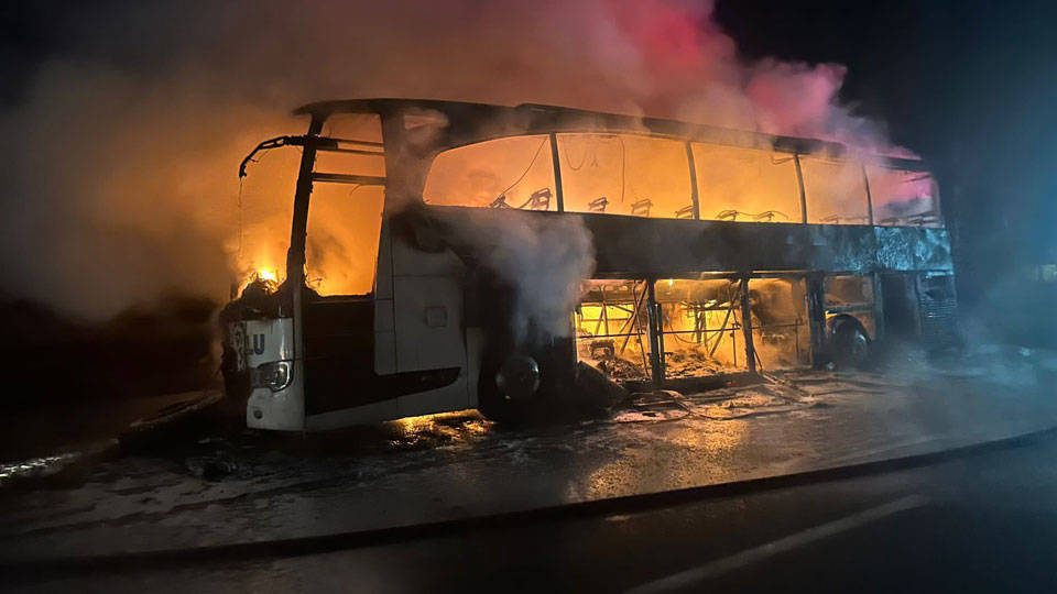 Yangını fark eden Demir, yol kenarında aracı durdurarak 33 yolcuyu tahliye etti. İhbar üzerine bölgeye polis ve itfaiye ekipleri sevk edildi. Ekiplerin müdahalesiyle söndürülen yangında, yolcu otobüsü kullanılamaz hale geldi.