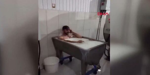 (The Turkish Post) – Süt toplama merkezindeki işçilerden Emre Sayar’ın temizlik kazanında süt banyosu yaptığı ana ait görüntüler, 6 Kasım 2020’de sosyal medyada paylaşıldı.
