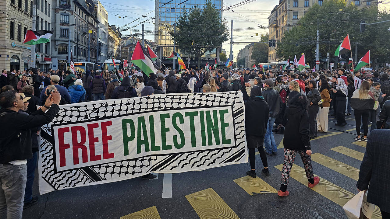 Göstericiler Fransızca, Arapça ve İngilizce sloganlar attı. Gazze ile dayanışma içinde olduklarını belirten eylemciler, buraya yönelik İsrail ablukasının kırılması ve yardımların engelsiz ulaşması talebinde bulundu. Öte yandan İsviçre’nin Bern, Basel, Lugano, Luzern ve Zürih kantonlarında da İsrail’in, Küresel Sumud Filosu’na saldırıları protesto edildi.