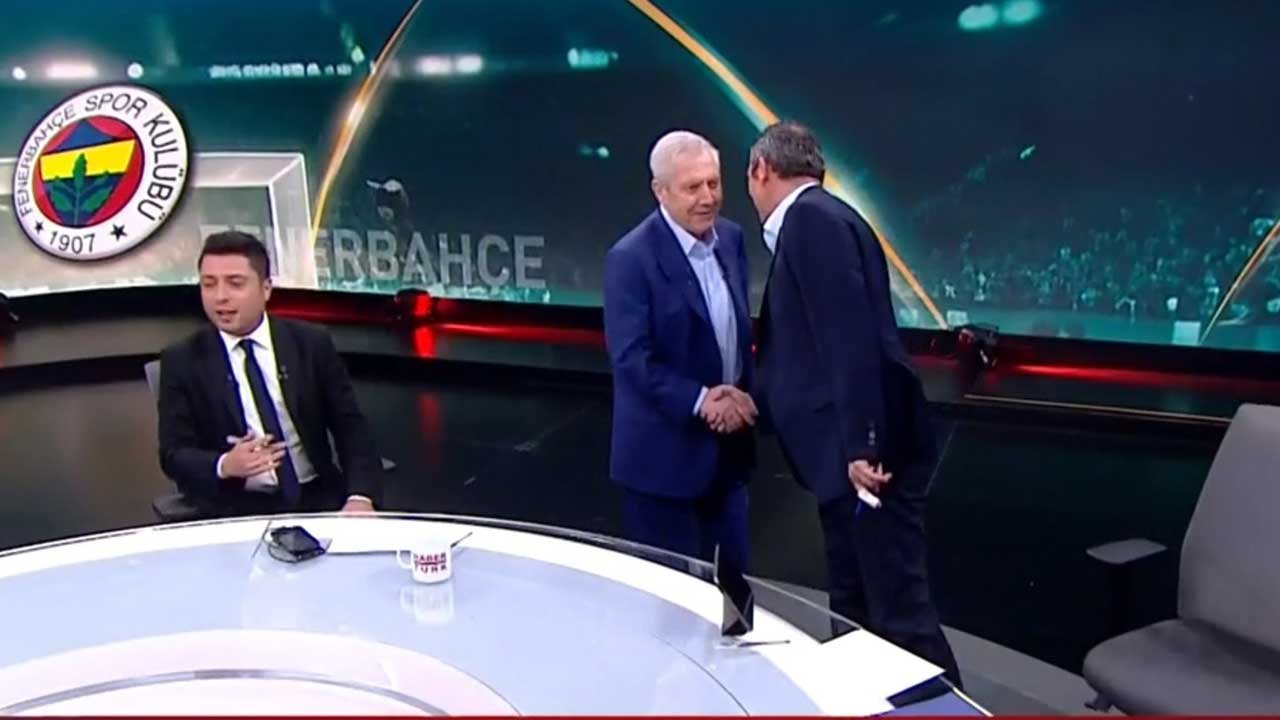Habertürk ekranlarında Ahmet Selim Kul moderatörlüğünde gerçekleşen tartışmaya iki isim, Aziz Yıldırım’ın ısrarı üzerine programa öpüşerek başladı.