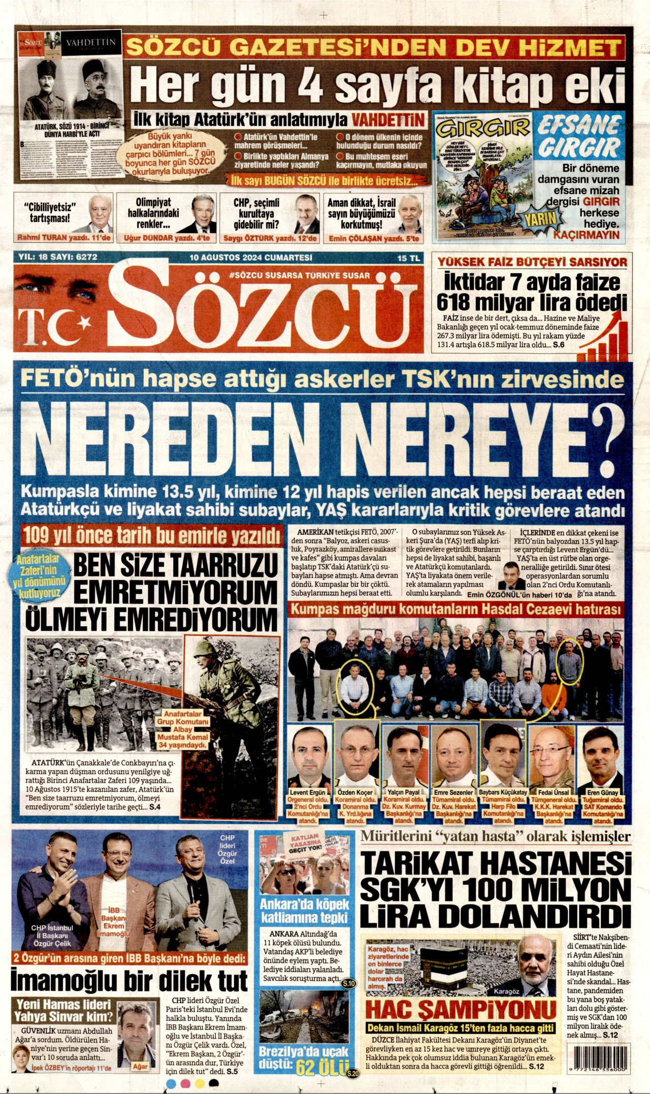 YAŞ toplantısının ardından yapılan atamalarla birlikte İstanbul Beykoz’da bulunan SAT Komando Komutanlığı görevine kumpas mağduru Tuğamiral Eren Günay getirildi. Amirallere Suikast ve Kafes kumpas davalarından tutuklanarak 5 yıl hapis yatan SAT komandosu Eren Günay, yargılandığı davada “Beni asın ama devleti yıkmakla yargılamayın, şerefimi, onurumu geri istiyorum” diyerek savunma yapmıştı. Ağırlaştırılmış müebbet hapisle yargılandığı davadan beraat eden Günay, 2023’te tuğamiralliğe yükselmiş ve Boğaz Komutanlığı görevine getirilmişti.