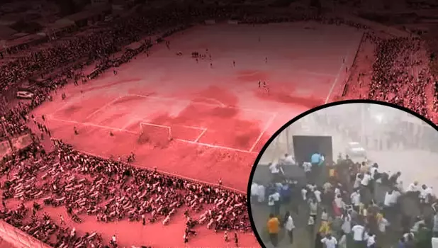Yerel medya, taraftarları kızdıran tartışmalı bir penaltının ardından kaos yaşandığını, birçoğunun çatıştığını ve kalabalık stadyumdaki açık futbol sahasına akın ettiğini bildirdi. Olay yeri görüntülerinde izdiham sırasında aralarında çocukların da göründüğü onlarca kişinin hayatını kaybettiği bildirildi.