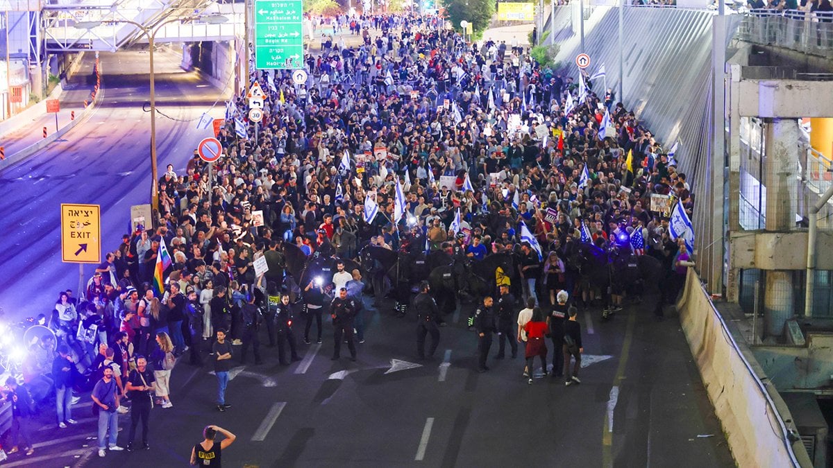 Tel Aviv kentinde de toplanan İsrailliler, İsrail hükümetinin Hamas’ın ateşkes ve esir takasına ilişkin anlaşma önerisinin kabul edilmesi talebiyle protesto gösterisi düzenledi. Savaşın bitmesi ve esir takası için anlaşma sağlanmasını talep eden göstericiler, Binyamin Netanyahu hükümeti aleyhine slogan atarak yolları kapatıp eylem yaptı. Bölgeye gelen İsrail güçleri, protestocuların ilerlemesine engel oldu.