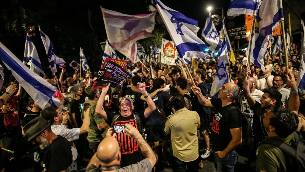 On binlerce İsraillinin katıldığı protestoda İsrailli esirlerin getirilmesi için anlaşma imzalanması çağrısı yapıldı. Protestocular, üzerinde ‘esir takası anlaşmasını kabul edin’, ‘seçimler hemen şimdi’, ‘sen başbakansın, sen suçlusun’ yazılı pankartlar taşıdı, hükümet aleyhine sloganlar attı.