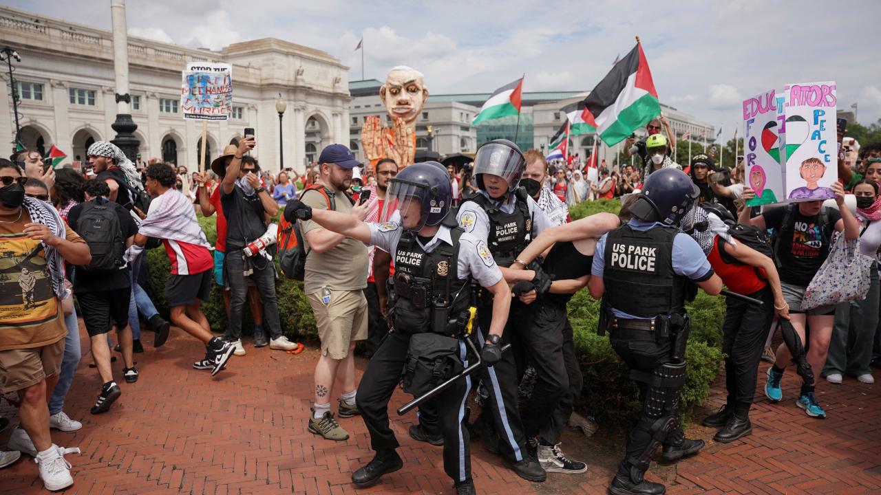 (The Turkish Post) – Washington’da bulunan İsrail Başbakanı Benyamin Netanyahu’yu protesto etmek isteyen binlerce Filistin destekçisi gösterici, başkent sokaklarını doldurdu.