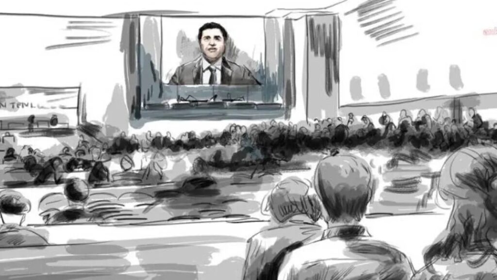 Duruşmaya tutuklu bulunduğu cezaevinden SEGBİS ile bağlanan Selahattin Demirtaş, savcının tutukluluğun devamı yönündeki mütalaasına ilişkin söz aldı. Demirtaş, “Herhangi bir söz talebim yok. Bütün arkadaşlarımın özgürlüğünü talep ediyorum.” diye konuştu.