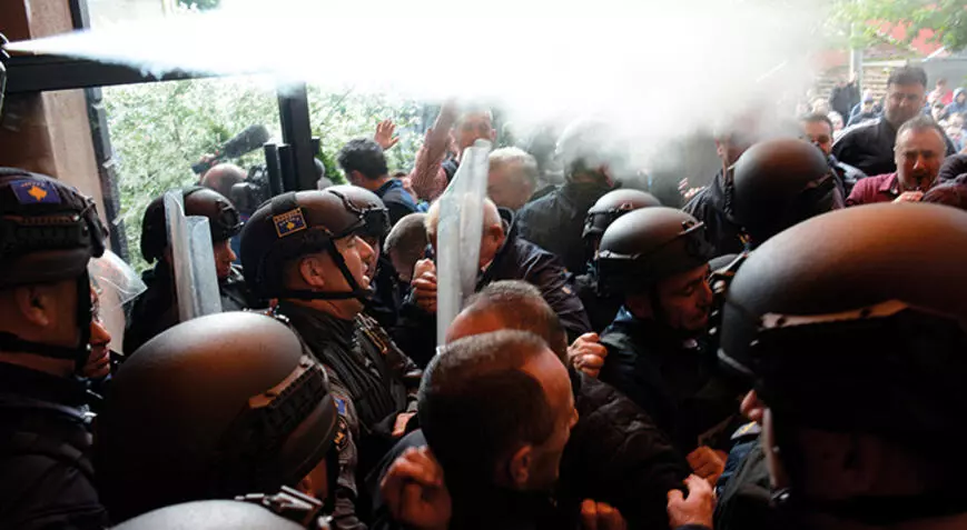 Kosova’nın kuzeyinde Leposaviç, Zveçan ve Zubin Potok’da Arnavut belediye başkanlarının görevlerine başlamasına karşı çıkan Sırplar ile polis arasında arbede çıktı. Kosova polisine ait zırhlı araçlara Sırp milliyetçi sembolleri çizen göstericiler, polise taş ve şişe gibi çeşitli nesneler fırlattı. Polis ise Sırp göstericilere göz yaşartıcı gaz ile karşılık verdi.