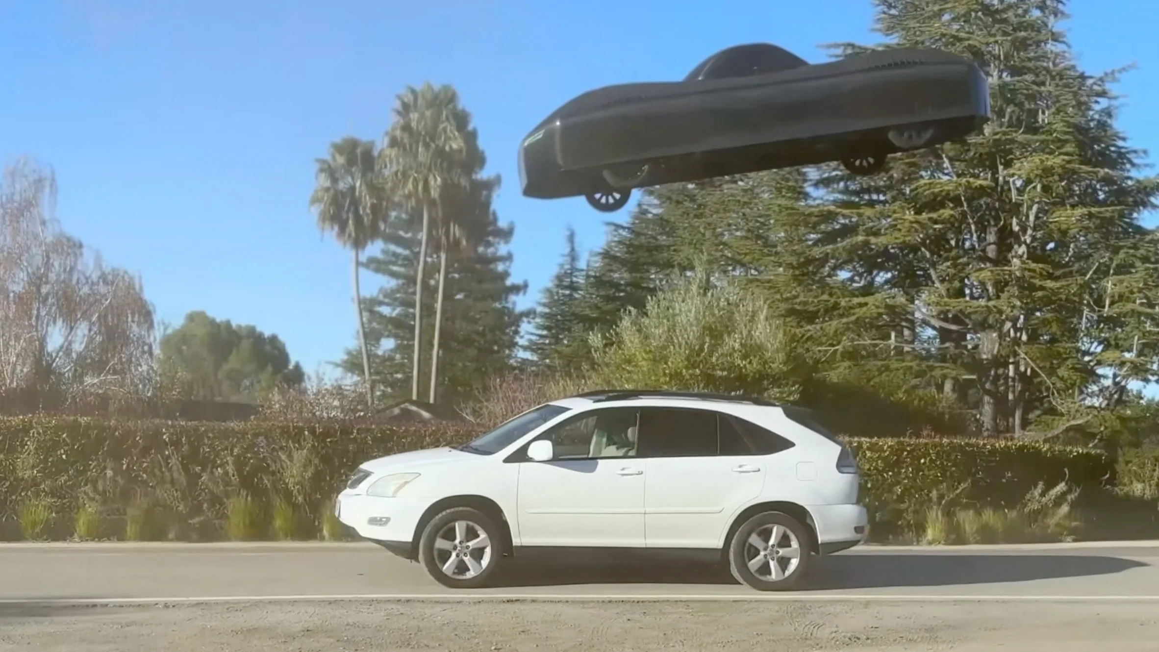 Test, ABD’nin Kaliforniya eyaletinde, halka açık bir yol üzerinde yapıldı ve Model A, dikey olarak havalanıp önündeki bir aracı geçtikten sonra sorunsuz bir şekilde tekrar yere indi.