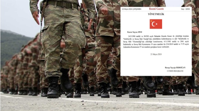 8510 sayılı kararda şu ifadeler yer aldı: “24/5/1990 tarihli ve 90/500 sayılı Bakanlar Kurulu Kararı ile yürürlüğe konulan ‘Seferberlik ve Savaş Hali Tüzüğü’nün yürürlükten kaldırılmasına ve ekli ‘Seferberlik ve Savaş Hâli Yönetmeliği’nin yürürlüğe konulmasına, 4/11/1983 tarihli 2941 sayılı Seferberlik ve Savaş Hali Kanununun 19 uncu maddesi ile 25/6/2019 tarihli ve 7179 sayılı Askeralma Kanununun 57’nci maddesi gereğince karar verilmiştir.”