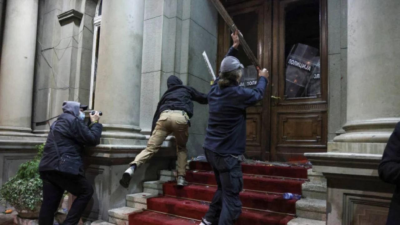Dün seçim komisyonu binası önünde toplanıp Belgrad Belediye Meclisi’ne yürüyen protestocular içinden bir grup, meclis binasına sopalarla saldırıp meşaleler fırlatarak kapı, pencereler ve güvenlik kamerasını kırdı. Bina içine mevzilenip girişleri engellemeye çalışan polis, göstericilere göz yaşartıcı gazla müdahale etti. Sırbistan Şiddete Karşı liderlerinden Miroslav Aleksic ise polise “göstericilere zarar vermek yerine onları korumaları” çağrısında bulundu.