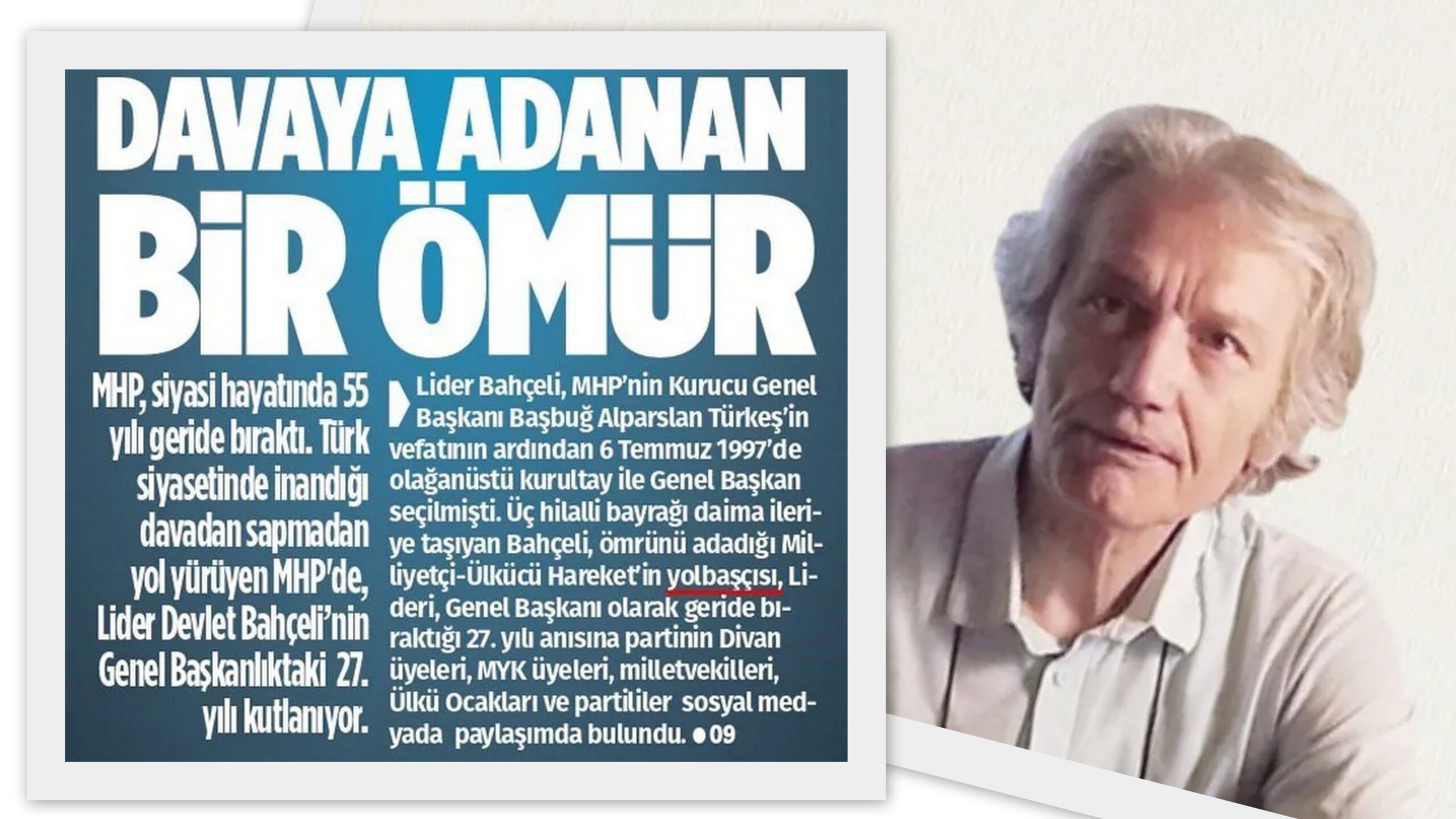 (The Turkish Post) – MHP’nin yarı resmi yayın organı Türkgün, 7 Temmuz 2024 günü, ‘Davaya Adanan Bir Ömür’ başlığıyla Devlet Bahçeli’nin genel başkanlıktaki 27. yılını kutladı.