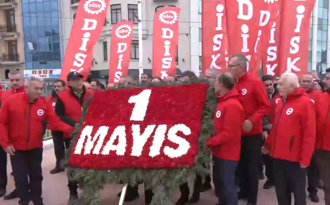 (The Turkish Post) – Devrimci İşçi Sendikaları Konfederasyonu (DİSK), 1 Mayıs Emek ve Dayanışma Günü kapsamında Taksim’deki Atatürk Anıtı’na yürüyerek çelenk bıraktı. Burada açıklama yapan DİSK Genel Başkanı Arzu Çerkezoğlu, “Taksim yasağından vazgeçin, bu barikatları kaldırın. Taksim Meydanı’nı 1 Mayıs’a açın, Taksim Meydanı’nı işçi sınıfına açın” ifadelerini kullandı.