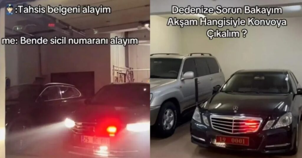 Bir başka videoda ise çakarlı bir aracı gösteren kişi, polis emojisiyle birlikte “Tahsis belgeni alayım. Me: Bende sicil numaranı alayım” notunu paylaştı.