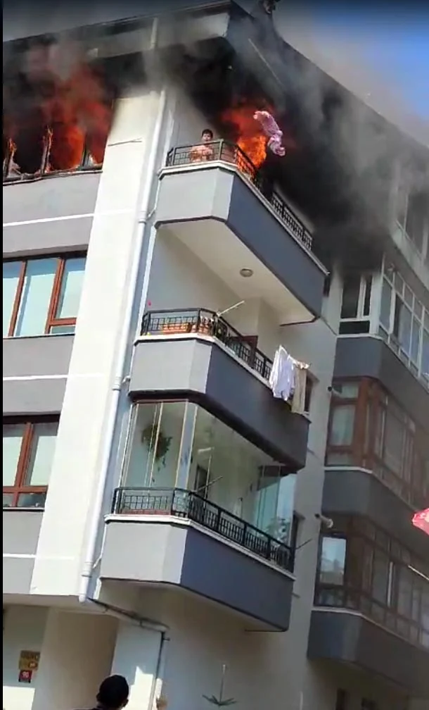 Olay yerine gelen bir vatandaşın o sırada evin çatısına çıkarak çocuğa su verdiğini belirten Özkök, “Çocuğu balkonun önünde tutmaya çalıştı ama itfaiye gecikmeli geldi. Biz de kendini atarsa diye apartman önünde battaniye ve yorgan açtık. Şükürler olsun atmadı, orada bekledi.” diye konuştu.